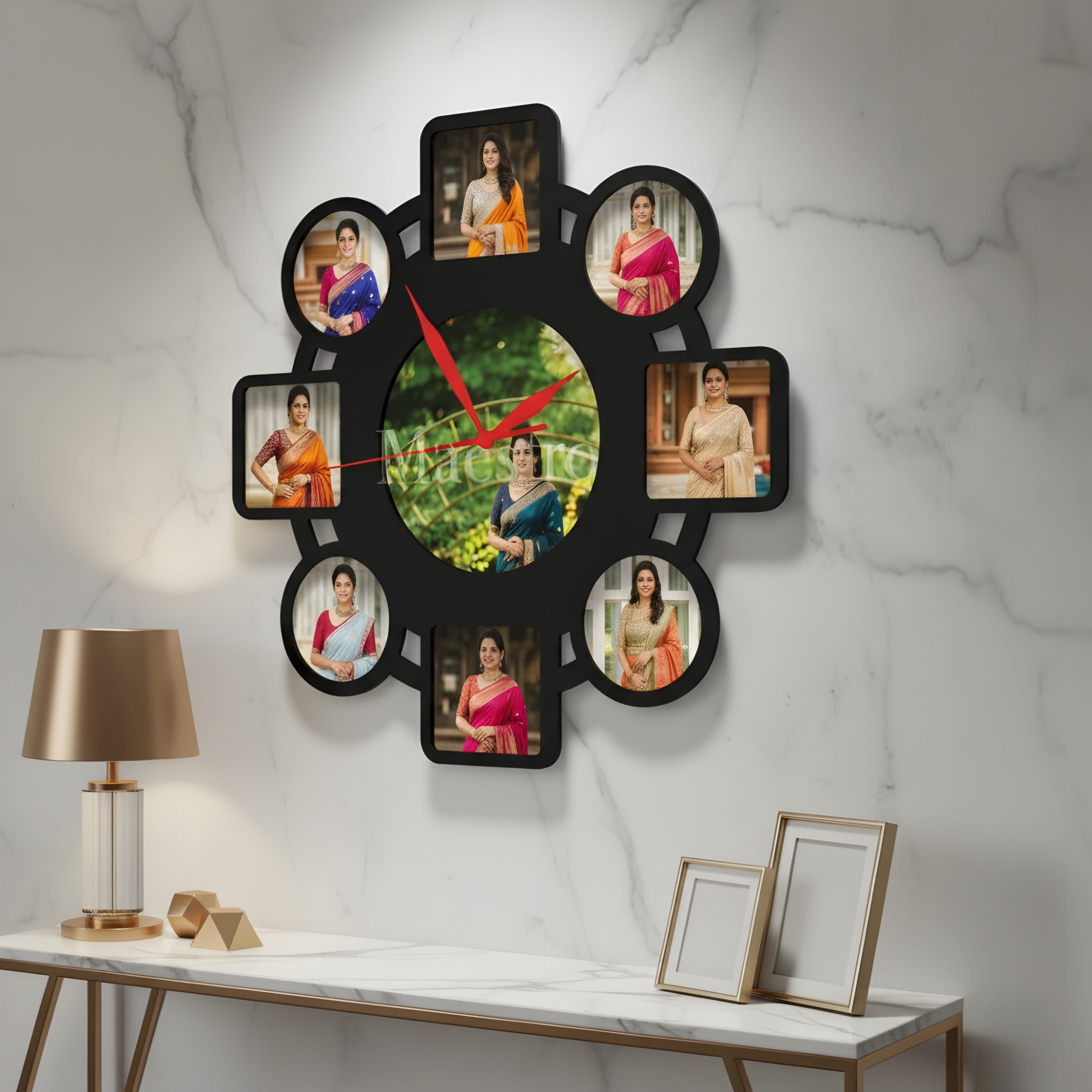 Elegant MDF wall clock collage with 9 personalized photos designed for memorable gifting and stylish home decor