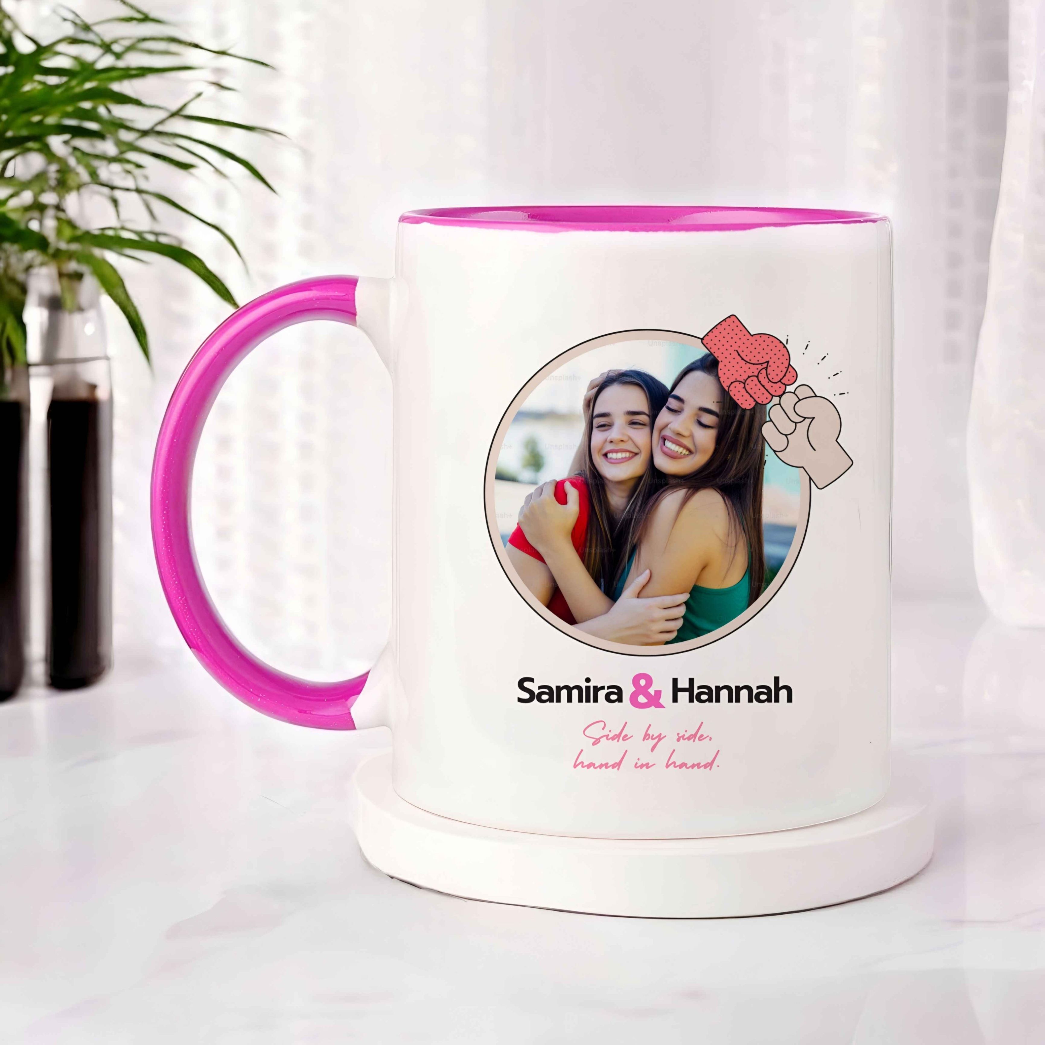 Celebrate the bond of friendship with this fun pink-handle mug, spreading smiles and joy with every sip.